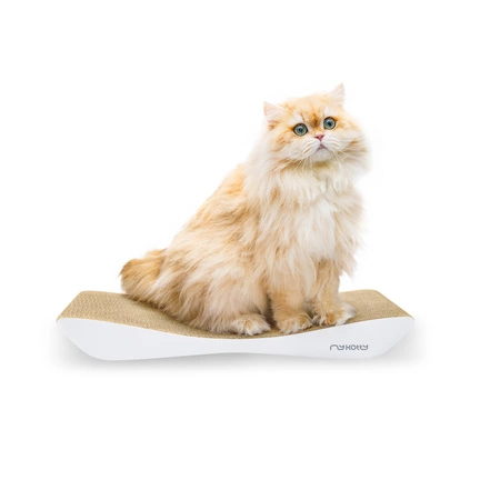 We've selected corrugated cardboard with the best technical parameters for making myKotty scratchers, ensuring the highest quality and durability. And cats appreciate that! The densely layered high-quality corrugated cardboard, soft as suede surface, spacious scratching area tailored to the needs of both small and large cats, and the lightweight, portable design of TOBI all contribute to this scratcher being a long-lasting companion for your cat.